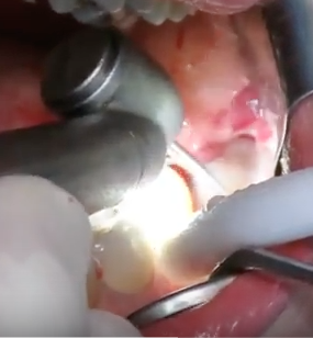 The management of the anterior open bite may be quite challenging and in some cases necessitates a multidisciplinary approach. We present here a patient suffering from an anterior open bite with an ankylosed central incisor due to previous trauma. The anterior open bite was corrected using conventional orthodontics and the ankylosed incisor was repositioned in the correct tri dimensional position using segmental osteotomy. The repositioned bone block needed 5 months of stabilization and the prosthetic rehabilitation of the anterior maxilla was completed using e-max crowns. At 24 months ,the result was stable with no relapse and an excellent pink and white esthetic score.