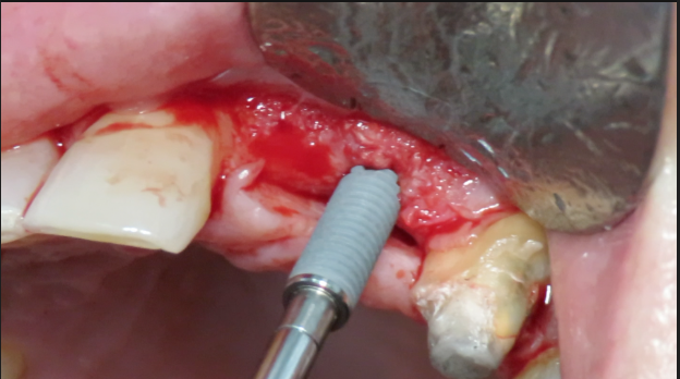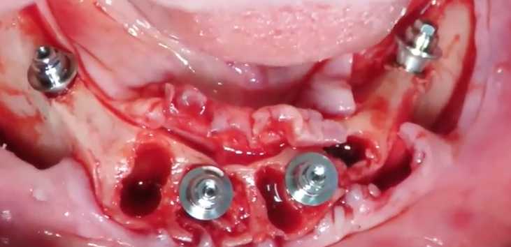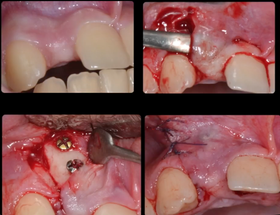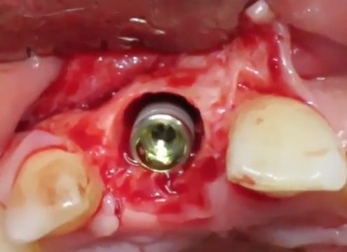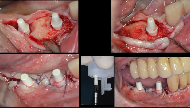 placement also adding PRF membranes. Re-entry at 4 months and implant